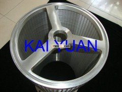 Rotary Screens typically use wedgewire for the screening media. The above externally fed unit has a spiral wound wedgewire screen drum 36" OD x 120" long.